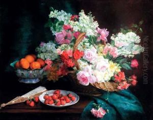 Panier De Fleurs, Fruit Et Eventail