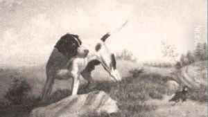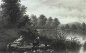 Landscape With An Ewe Protecting Her Lambs From A Fox, Mountains In The Background
