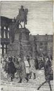 The Rush from the New York Stock Exchange on September 18, 1873, from A History of the Last Quarter Century' by E. Benjamin Andrews, published in Scribners Magazine, July 1895