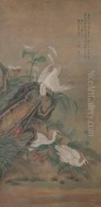 Flowers And Birds Oil Painting by Hua Yan