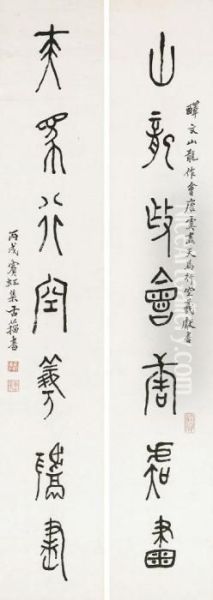 Bring the timeless beauty of Huang Binhong's Couplet Calligraphy In Seal Script Style into your home with a handmade oil painting reproduction. Carefully recreated on canvas by skilled artists using traditional techniques, this piece captures the delicate brushwork, subtle light, and vibrant color of the original masterpiece. With museum-level quality and rich texture, it brings elegance and artistic depth to any space. Enjoy free shipping and make this masterpiece a part of your personal collection.