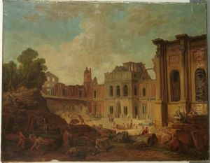 Washerwomen By A Pool Before The Ruins Of A Palace