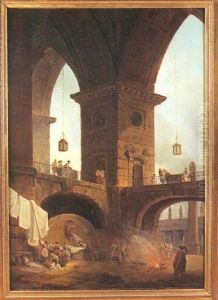 An Architectural Cappriccio With Washerwomen By A River