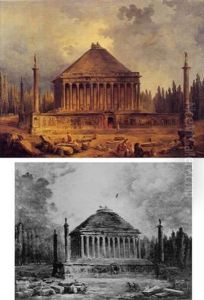 A Capriccio View Of The Temple Of Vesta With Figures Playing Cards In The Foreground