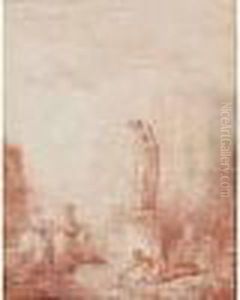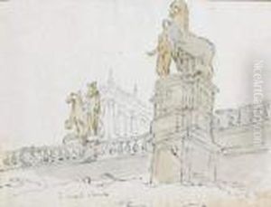 Italian Landscape With A Peasant Woman Standing By A Statue