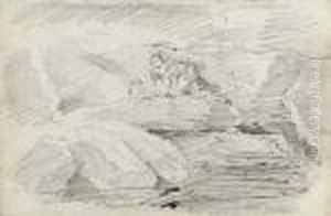 Un Homme Assis Jouant De La Cornemuse Et Des Femmes Dansant A L'arriere-plan (recto); Croquis (verso)