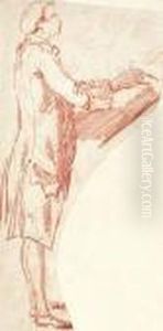 Personnage Dessinant Des Antiques A La Lumiere D'une Torche