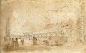 A River Landscape With A Fisherman Pulling In A Net