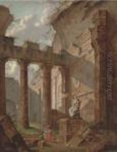 A Capriccio Of Classical Ruins With Figures By A Statue