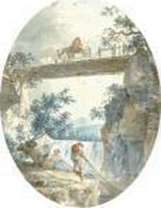 A Fortified Bridge With A Peasant Fishing With His Wife And Child;and A Wooded Landscape With A Young Couple In A Clearing