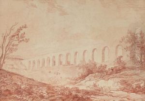 River Landscape With Washerwomen In The Foreground, An Arched Bridge And Ruined Temple Set High On The River Bank Beyond