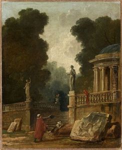 Hubert Robert Et Un Amateur Visitant Une Tombe Dans Une Eglise