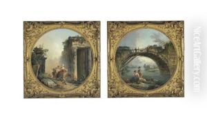 Capriccio Of An Obelisk And A Ruined Classical Building With Figures; And Capriccio Of A Washerwomen And A Dog (pair)