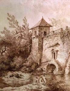 Figures By A Circular, Ruined Temple