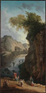 Washerwomen At The Edge Of A River, Beneath A Ruined Circular Temple