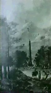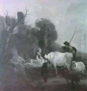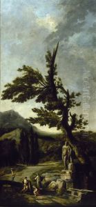 An Italianate Landscape With Peasants And Cattle By A Fountain