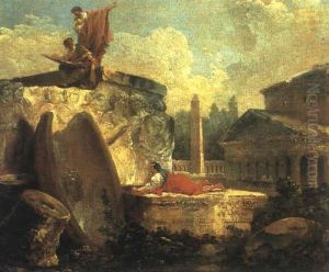 Dessinateurs Dans Un Paysage Avec Ruines Antiques