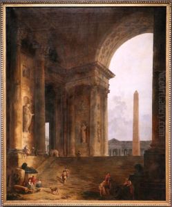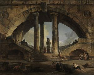 Washer Women And Fishermen Beneath An Arch And Figures In A Landscape With A Fountain And Classical Ruins