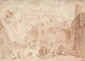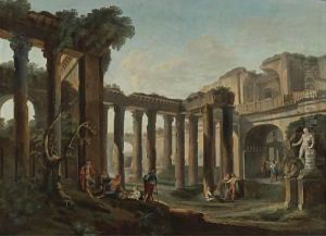 An Architectural Capriccio With Figures Among Roman Ruins