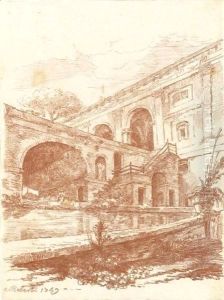 A River Landscape With An Artist Sketching Beneath A Ruined Temple, Possibly The Temple Of The Sibyl At Tivoli