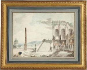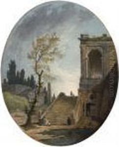 A Capriccio Of Classical Ruins With A Staircaseleading From A Pool To A Loggia, A Temple And An Obeliskbeyond