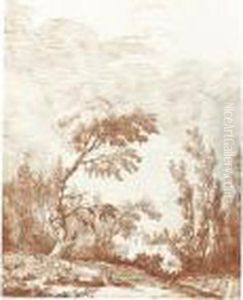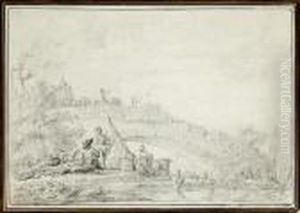 A Wooded Italian Landscape With Seated Figures In The Foreground And A Villa Beyond