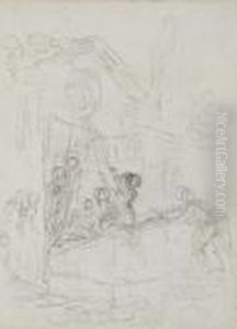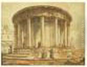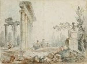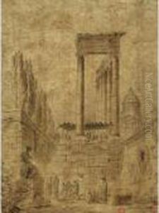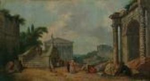 The Forum, Rome, With The Temple Of Antoninus And Faustina And Figures Resting In The Foreground (+ The Forum, Rome, With The Temple Of Saturn And Figures Conversing And Resting By A Sculpted Vase; Pair)