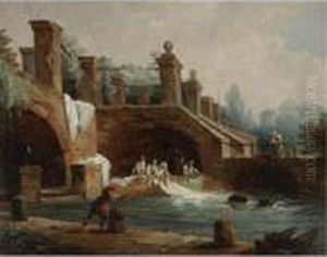 Laundresses At Work Under The Archway Of A Trellised Acqueduct