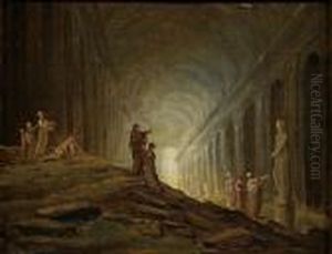 Personnages Dans Une Vue Fantaisiste De La Colonnade Du Louvre En Ruines