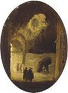 A Capriccio With The Temple Of The Sybil At Tivoli, Capuchinpriests Standing Amongst The Ruins