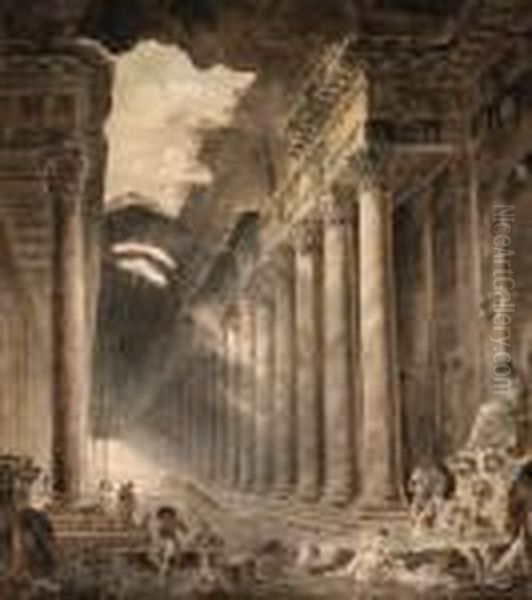 Bring the timeless beauty of Hubert Robert's A Great Colonnaded Building, The Roof Partly Open To The Sky, Withgirls Washing Clothes At A Fountain Below A Statue Of A Seatedman into your home with a handmade oil painting reproduction. Carefully recreated on canvas by skilled artists using traditional techniques, this piece captures the delicate brushwork, subtle light, and vibrant color of the original masterpiece. With museum-level quality and rich texture, it brings elegance and artistic depth to any space. Enjoy free shipping and make this masterpiece a part of your personal collection.