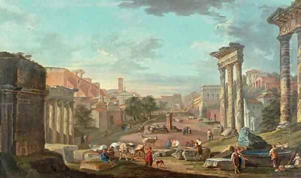 A capriccio of the Campo Vaccino with figures amongst ruins