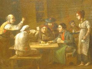Joueurs De Cartes Devant Un Temple En Ruines