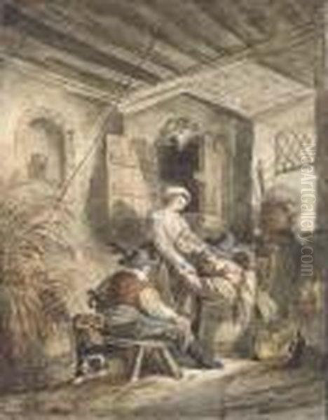 L'aubergiste Courtisee: L'interieur D'une Auberge Avec Deuxvoyageurs Courtisant Une Femme