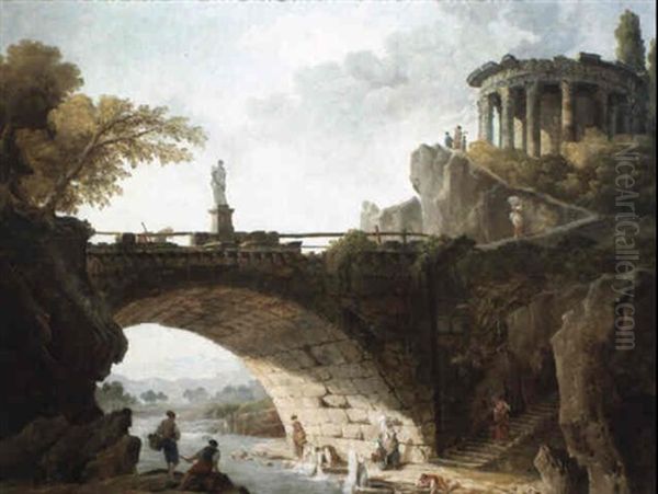 Les Lavandieres Sous Un Pont De Pierre, Pres Du Temple De Vesta