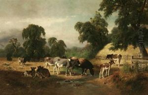 Cows By A Stream