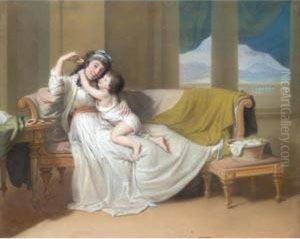 Double Portrait Of Mary, Countess Of Erne, With Her Daughter Lady Caroline Crichton, Later Lady Wharncliffe, Seated, The Former In A Brown Dress, The Latter Showing Her Mother A Drawing