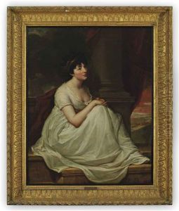 Portrait Of Jane Winder, Wife Of William Charles Monck-mason Of Masonbrook, Co. Kildare, Seated On A Ledge In A White Dress With A Gold Headdress Beside A...