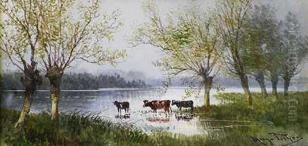 Bring the timeless beauty of Hugo Fisher's "cows Drinking At A River Bank". Signed Hugo Fisher L/r. Watercolor. Measuring 6 ¾" By 13 ¾" into your home with a handmade oil painting reproduction. Carefully recreated on canvas by skilled artists using traditional techniques, this piece captures the delicate brushwork, subtle light, and vibrant color of the original masterpiece. With museum-level quality and rich texture, it brings elegance and artistic depth to any space. Enjoy free shipping and make this masterpiece a part of your personal collection.