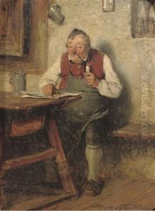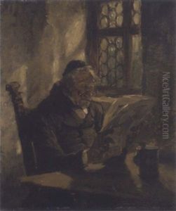 Die Lekture. Ein Alterer Herr Studiert Ein Tagesblatt In Der Guten Stube