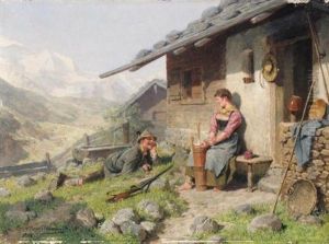 Madel Und Bursch Vor Der Almhutte