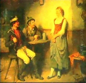 Mann mit zwei Frauen, von denen eine Zither spielt