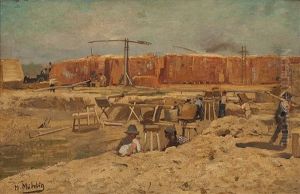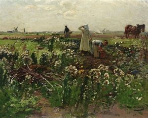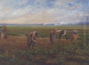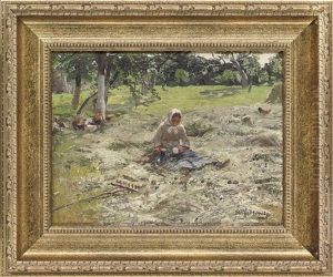 Landschaft Mit Heuhocke Und Bauern Bei Der Feldarbeit