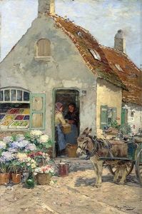 Milchmann Mit Hundegespann Am Schlossteich Mit Enten