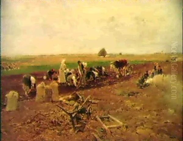 Bei Der Kartoffelernte Oil Painting by Hugo Muehlig