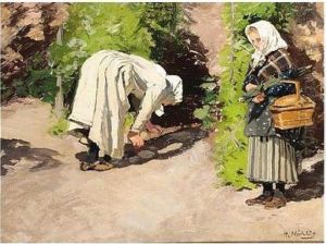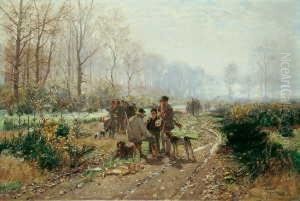 Bei Der Kartoffelernte. Signiert Unten Rechts: Hugo Muhlig. Verso Betitelt. Ol Auf Karton. H 15,4; B 24 Cm.
