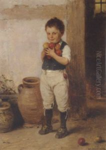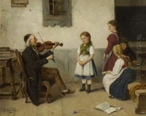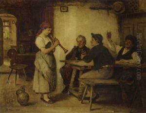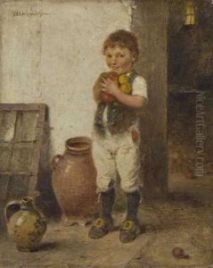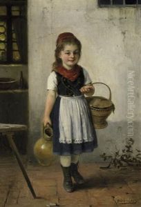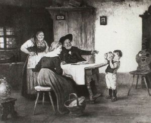 Vesper - Bauernmadchen Mit Ihren Drei Geschwistern Am Brotschrank