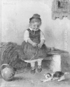 Kleines Madchen Mit Zwei K,tzchen Spielend