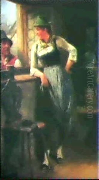 Bursch Und Madel Am Fenster Oil Painting by Hugo Kauffmann