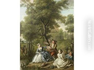 An Amorous Couple In A Domestic Interior With A Landscapebeyond